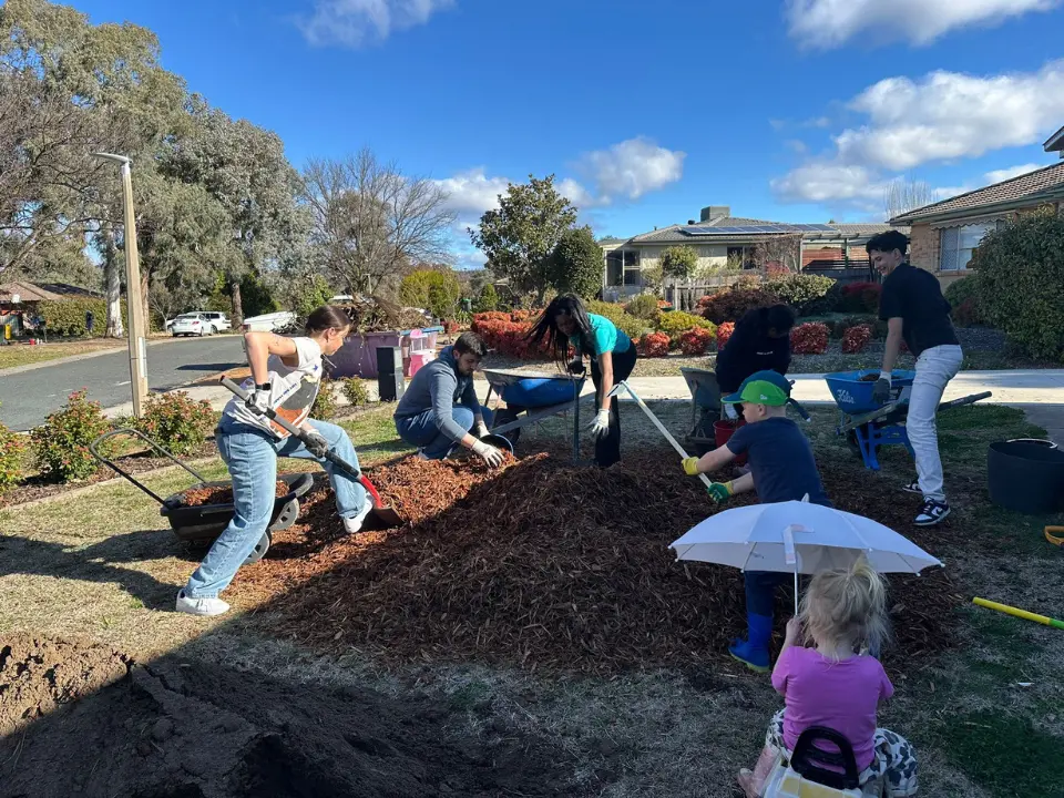 Sophia-Rose (left) and other delegates participating in a community service project, which is a key part of the 4-day program.